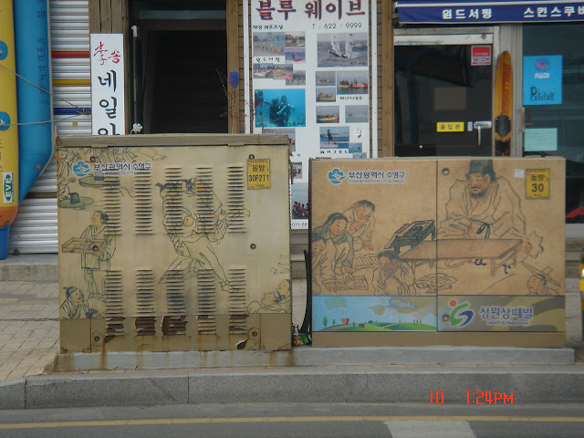 January 2010. Day 4 in Busan. Beside Haeundae, another beach worth to visit in Busan is Gwanganli. Gwanganli is more well-know with Gwangan Daekyo (Gwangan bridge) - a suspension bridge that connects Haeundae-gu to Suyeong-gu - which can be view from any part from the beach. Gwangan Daekyo also known as diamond bridge, as it bling and shine like a diamond at night. Just like Haeundae, Gwanganli is filled with hotels, restaurants and cafes along the beach. Gwanganli is also well known with sashimi restaurants and seafood market at Millak dong - upper side of Gwananli. From Milak-dong, we slowly walk to the other side of Gwanganli - Namcheon-dong. This part of Gwanganli is the closest point to see Gwangan Daekyo from the coast. Besides that, the Samik Beach Town Apartment complex next to the coast is a popular spot for cherry blossom during spring.