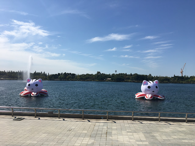 What I like the most in the lake park is the mini libraries. Total 3 of them. First one I encounter is the windmill mini library next to the lakeside square, which is also the most beautiful among 3. While the second mini library a roofed rest area with long benches where the books were kept in the notice board. The two giant rubber cat balloon that floating on the lake is the mascot of Goyang-si. Cat pronounce as Goyang-i in Korean, which has similar sound with Goyang-si (Goyang City), so I guess that's how cat become the mascot of Goyang.